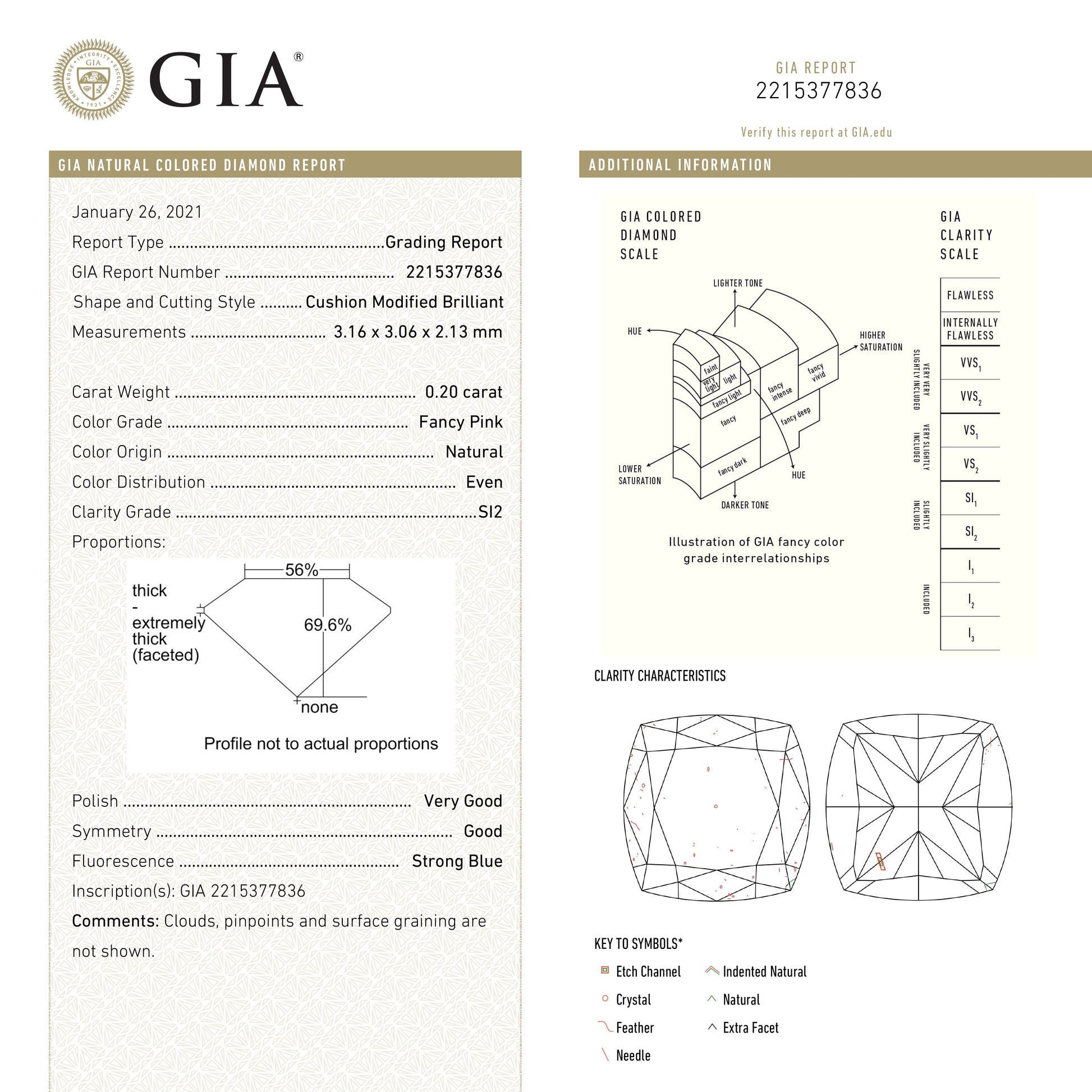 0.20ct 3.16x3.06x2.13mm GIA SI2 Fancy Pink Cushion Brilliant π¦πΊ 24099-01