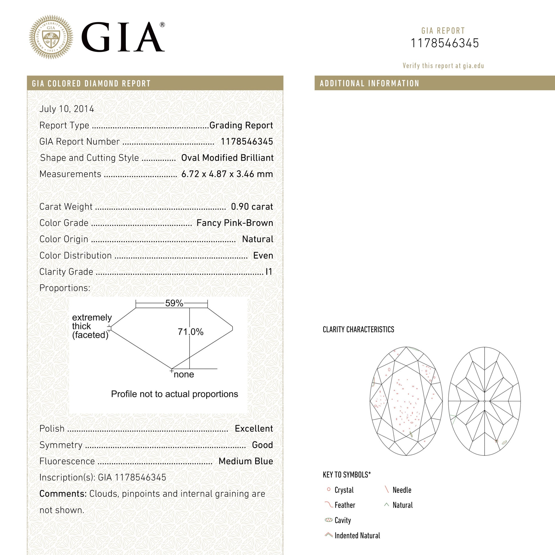 0.90ct 6.72x4.87x3.46mm GIA I1 Fancy Pink-Brown Oval Brilliant π¦πΊ 24092-01