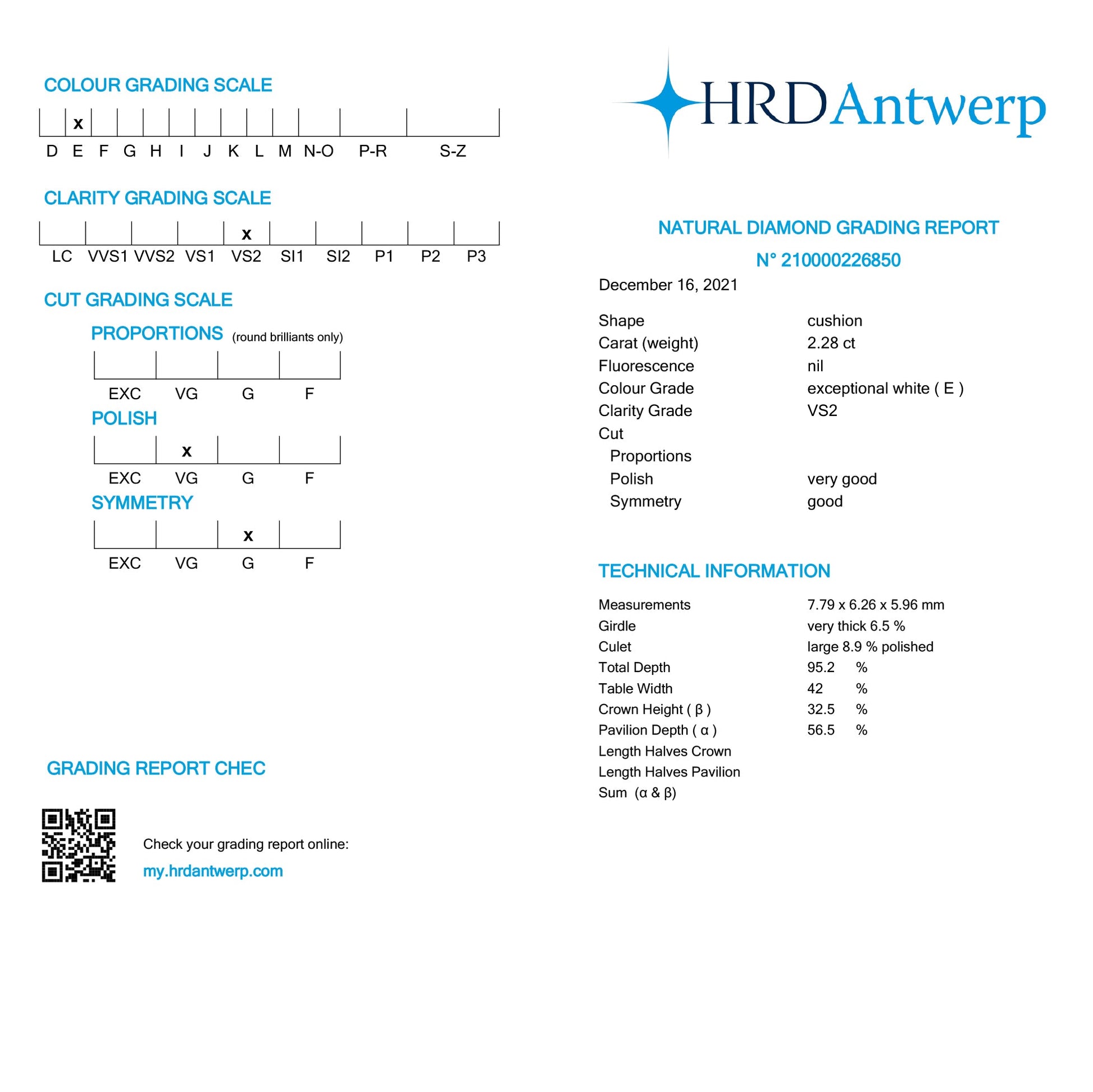 2.28ct 7.79x6.26x5.96mm HRD VS2 E Antique Peruzzi Cut 19889-01